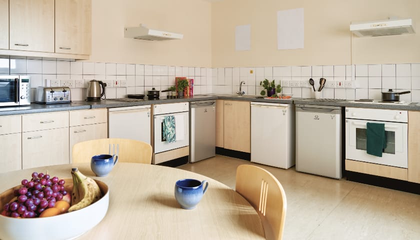 Fylde's George Fox Building sees 9 or 10 students sharing a kitchen, but there are six kitchens on each floor making it very sociable.