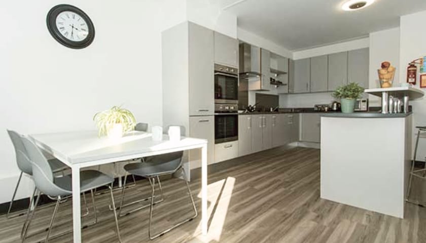 The numbers sharing differs between the buildings and as such will appeal to different people. Most en suite bedrooms are arranged in clusters of eight people sharing a kitchen, though there are some areas where only five (Bowland Tower) or six share.