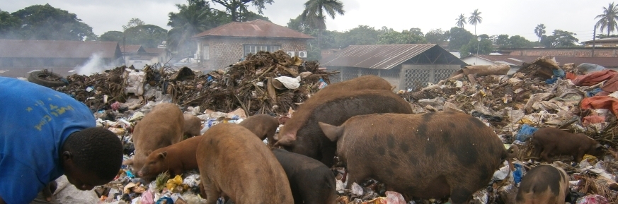 Firstly there are many people - scavengers - living and depending on the dump sites. They have makeshift houses there, rear animals such as pigs and poultry, grow and sell food.